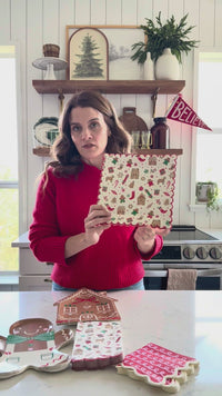 Celebrate the season with the Gingerbread Pattern Plates, a festive addition to any holiday table. Featuring charming gingerbread houses, cookies, and candy canes, these 9" square paper plates bring warmth and whimsy to Christmas gatherings, cookie swaps, and dessert tables. The scalloped red trim adds a sweet finishing detail that pairs beautifully with other pieces from the Gingerbread collection.