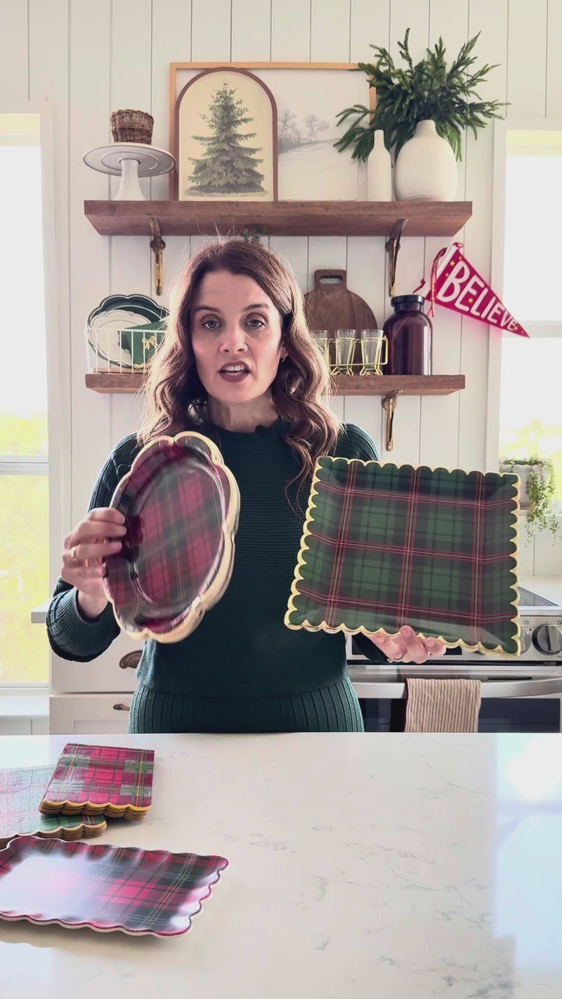 Set a warm and welcoming table with these Red Christmas Plaid Round Scalloped Plates. Featuring a rich red and green tartan design framed in gold foil, these plates bring a cozy, polished look to your holiday gatherings. The scalloped edges lend an elegant shape while the sturdy paper construction makes serving effortless. Whether you're hosting a Christmas dinner or a seasonal get-together, these plates make every setting feel extra special.